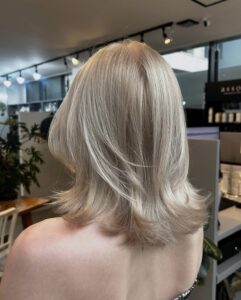 The Refinement: Once the hair reaches that “pale yellow” stage, we apply a precision toner to neutralize every hint of warmth, leaving you with a crisp, snowy finish.