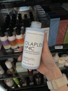 The Weekly Deep Clean: If you don’t wash daily, we recommend Olaplex No. 4C Bond Maintenance Clarifying Shampoo. It removes buildup and impurities once every two weeks without stripping your color.