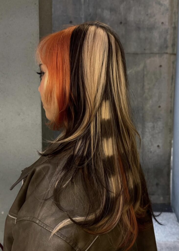 Inspired by the patchy, multi-colored coats of calico cats, this look is all about high-contrast color blocking. At Assort Tokyo, we’re taking this “patchwork” aesthetic and tailoring it to every hair length and texture. Whether you’re rocking a sharp wolf cut or long, flowing layers, here is how we’re bringing the calico vibe to life.
