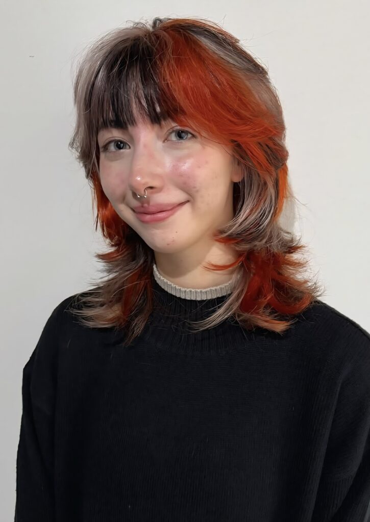 This is where calico color truly shines. When you have layers—especially the face-framing “hush” or wolf styles —we can hide “peek-a-boo” patches of vibrant orange or deep mahogany. As you move, the colors shift and reveal themselves, creating a dynamic, 3D effect that highlights the movement of the haircut.